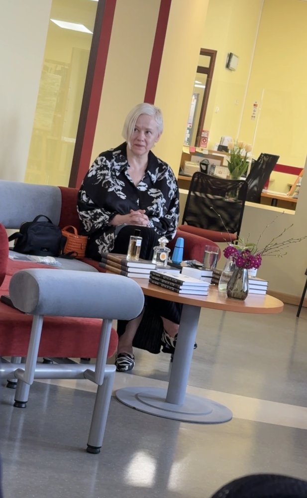 Lasītavas telpa vēl šodien vēsta par iepriekšējās dienas notikumu. Gaisā saglabājies vakardienas (22. aprīlis) tikšanās aromātu kokteilis, kas atspoguļo rakstnieces Daces Rukšānes tetraloģiju. Katram romānam autore rūpīgi piemeklējusi smaržu. Tikšanās laikā grāmatas un smaržu pudelītes bija liecinieki rakstīšanas procesam, par kuru rakstniece stāstīja klātesošajiem.