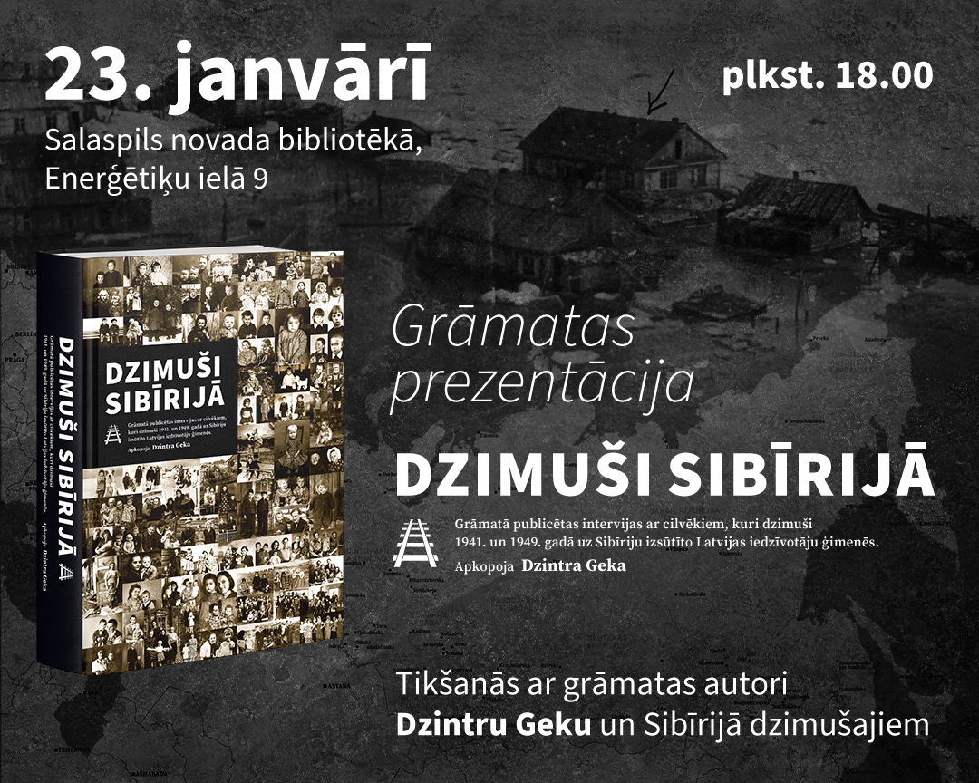 Salaspils novada bibliotēka 23. janvārī plkst. 18:00 aicina ikvienu uz tikšanos ar režisori un grāmatu autori Dzintru Geku-Vasku un grāmatas “Dzimuši Sibīrijā” prezentāciju. Pasākumu atbalsta Salaspils novada pašvaldība.
