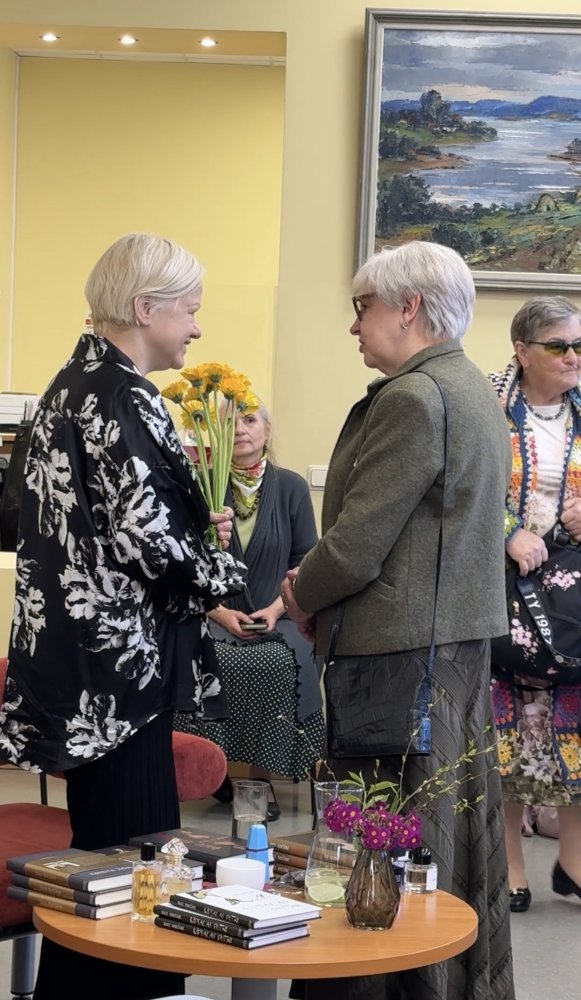 Lasītavas telpa vēl šodien vēsta par iepriekšējās dienas notikumu. Gaisā saglabājies vakardienas (22. aprīlis) tikšanās aromātu kokteilis, kas atspoguļo rakstnieces Daces Rukšānes tetraloģiju. Katram romānam autore rūpīgi piemeklējusi smaržu. Tikšanās laikā grāmatas un smaržu pudelītes bija liecinieki rakstīšanas procesam, par kuru rakstniece stāstīja klātesošajiem.